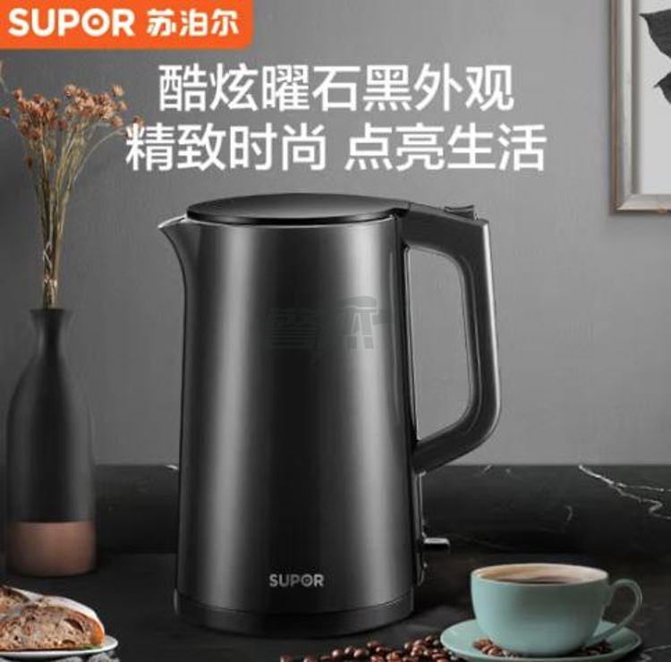 产品名称 : 苏泊尔 ZMD安心系列SW-17SJ01 电水壶 1.7L容量 双层保温防烫 全钢无缝一体内胆 单位:个