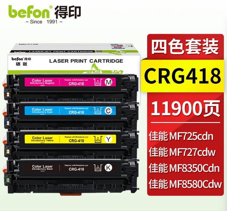产品名称 : 得印CRG418硒鼓 四色套装 适用佳能MF8350cdn/8380cdw/8580cdw/8550cdn粉盒MF725Cdn/727cdw墨盒 佳能418硒鼓