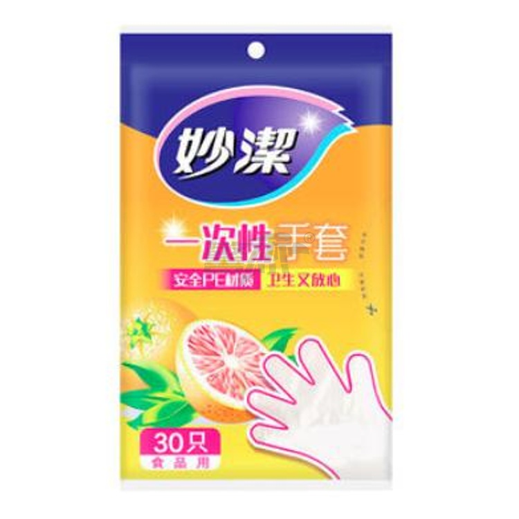 产品名称 : 妙洁 一次性手套大号 PE手套 抽取式 透明塑料手套 30只/ 包