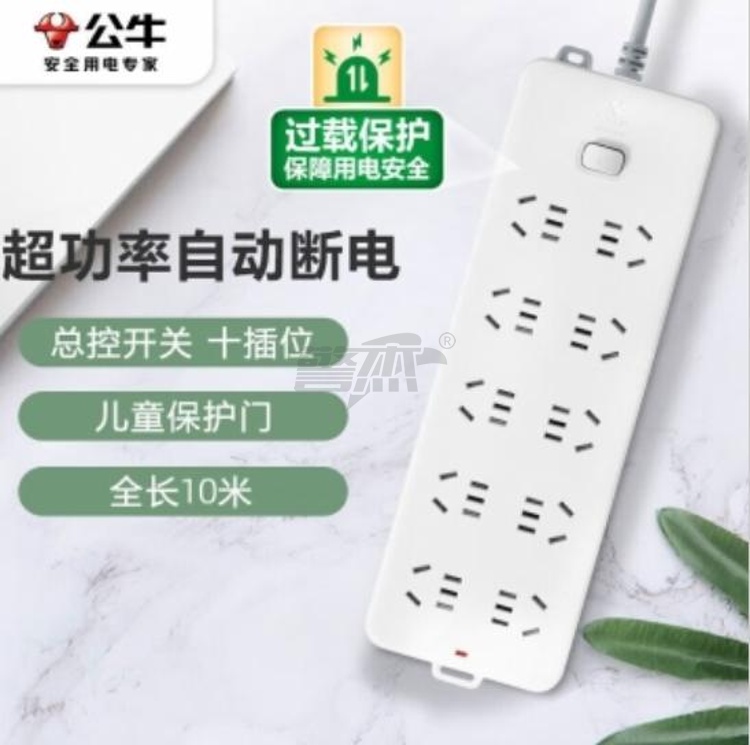 公牛(BULL)GN-218 10米 电源插座接线板插排插线板拖线板带线超功率过载保护