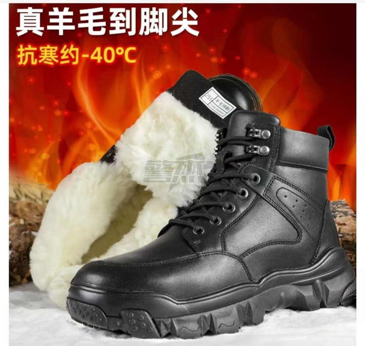 产品名称 : 冬季羊毛战术棉鞋防寒靴东北加绒保暖雪地登山靴 单位(双)