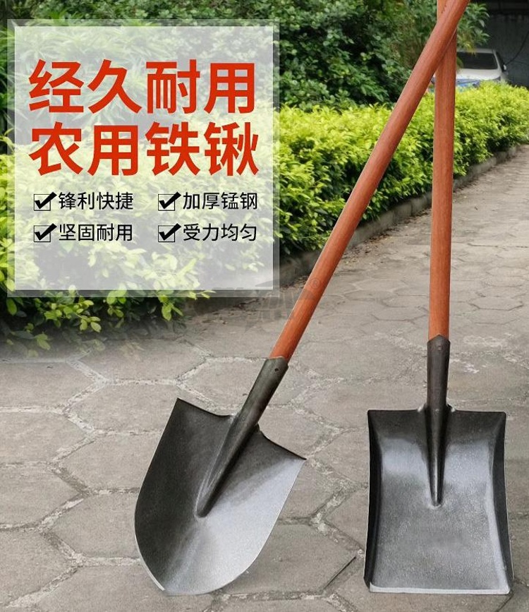 产品名称 : 铁锹挖土锰钢铁掀木柄方铲实木把铁锹