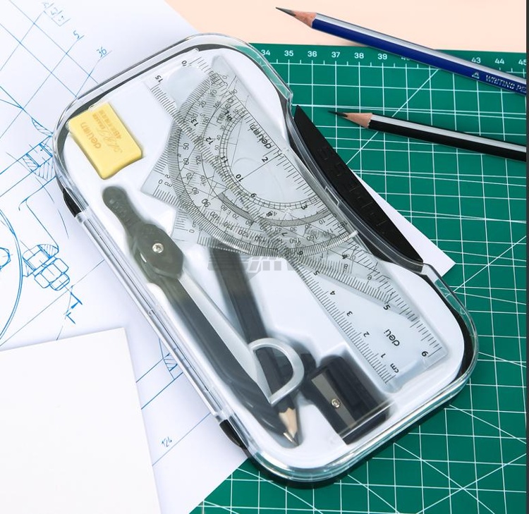 得力(deli)夹铅笔圆规直尺绘图套装75151
