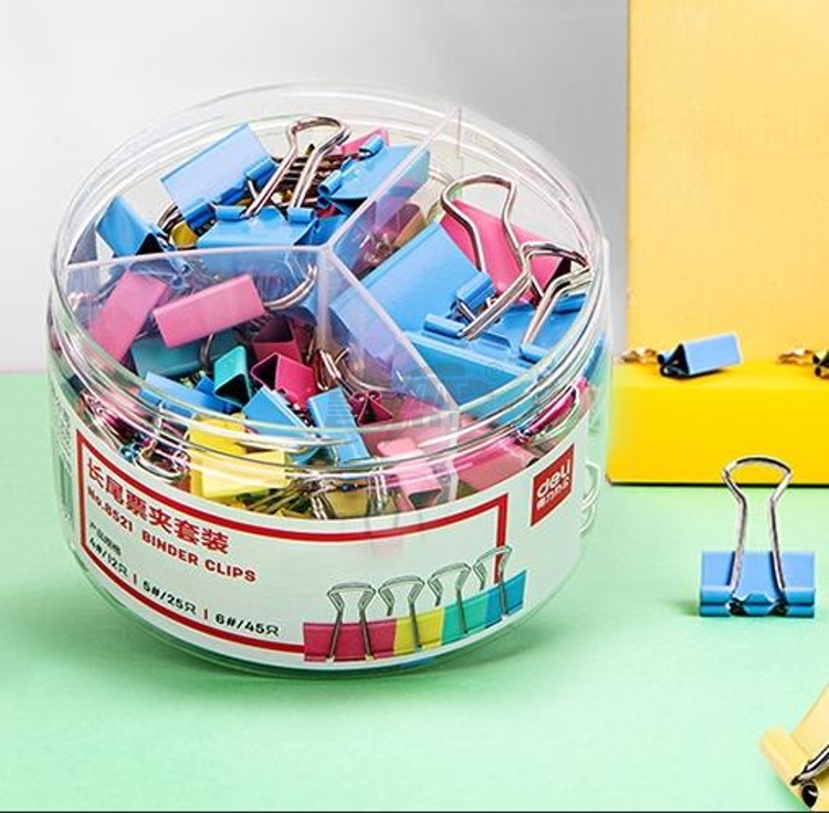 产品名称 : 得力8521长尾票夹套装(混)(82只/筒)