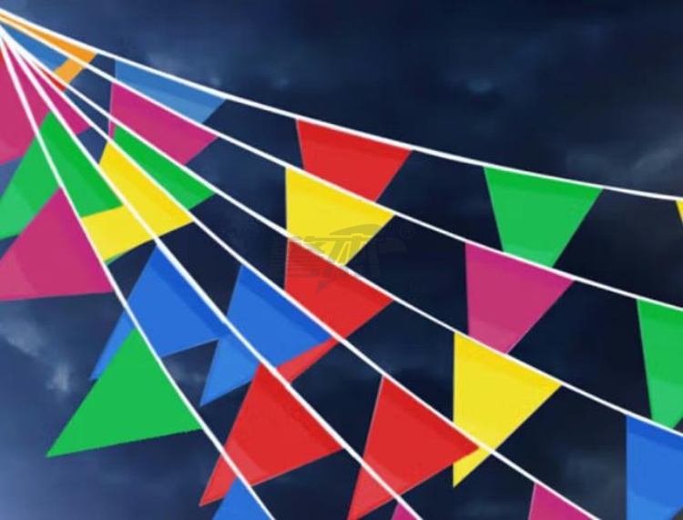 产品名称 : 彩旗串旗 新年元旦装饰拉旗彩色三角旗帜装饰婚庆用品 一根8米 25*35 10根/袋