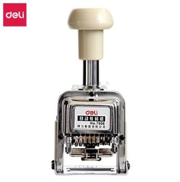 产品名称 : “deli/得力”No.7506 自动号码机 单个装(金属银色6位财务办公打码机盖印清晰)