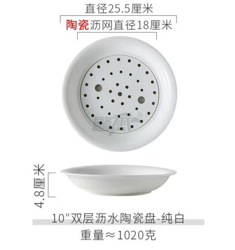 产品名称 : 饺子盘 沥水盘 双层盘子 骨瓷盘子 10寸