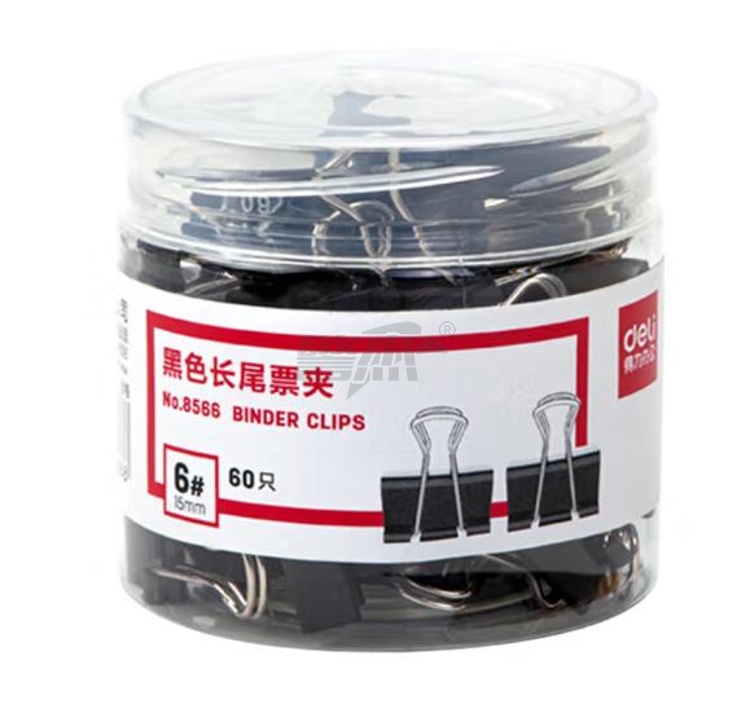 产品名称 : 得力 8566 长尾夹 15mm 黑