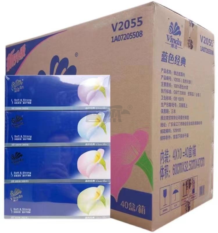 产品名称 : 维达2055纸抽盒装100抽/盒 4盒/提 10提/件190*195mm3层