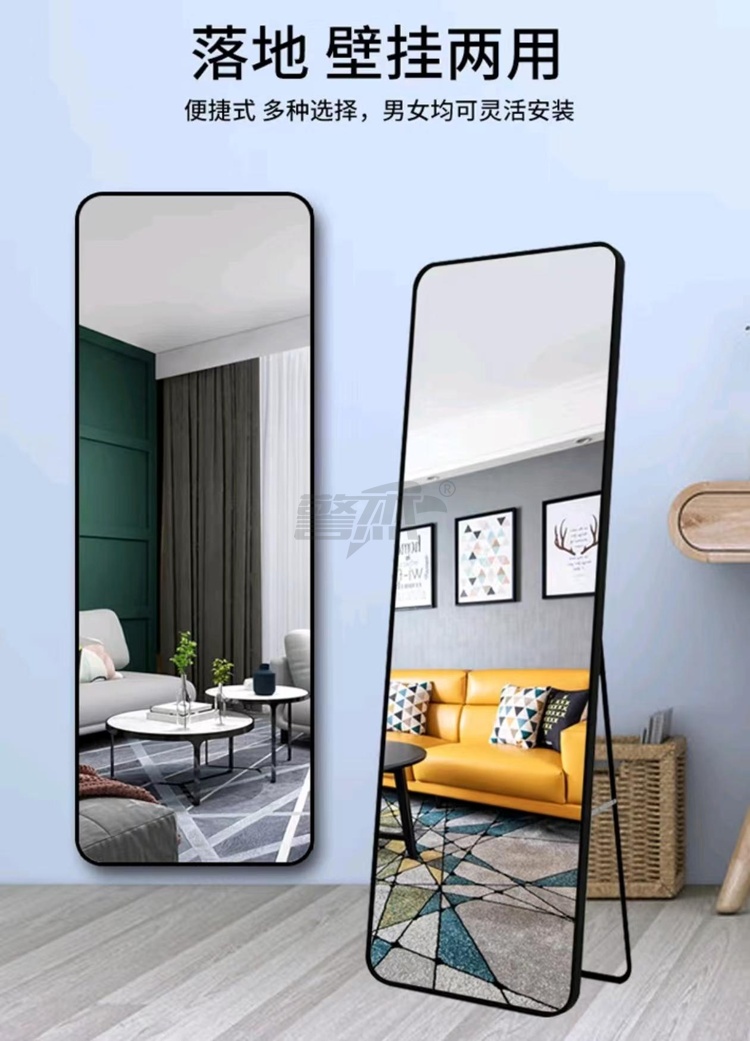 产品名称 : 初学者 穿衣镜 全身落地镜试衣镜家用防爆壁挂衣帽间铝合金网红大镜子 经典黑170*65【壁挂+落地】