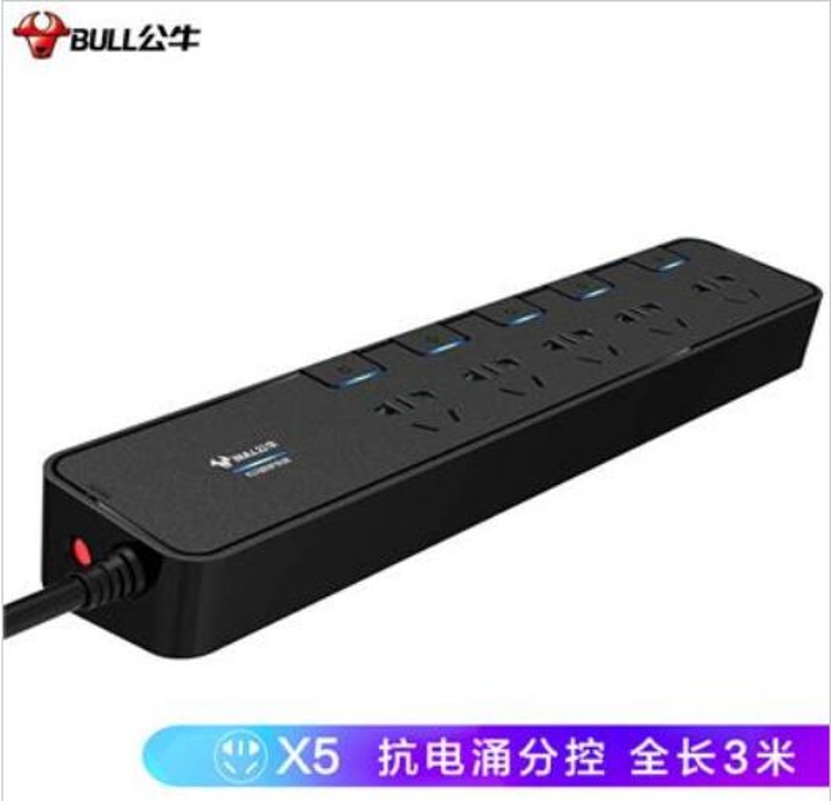 公牛(BULL) 插线板 插排 排插 接线板 拖线板 5位分控全长3米 保护智能电器 GN-H3053