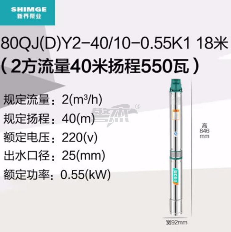 产品名称 : 新界不锈钢深井泵2方流量40米扬程抽井水增压泵高压潜水泵抽水机220V