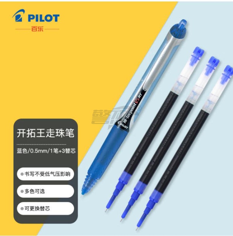 产品名称 : 百乐(PILOT)开拓王走珠笔签字笔彩色按动中性笔学习考试办公用笔 BXRT-V5 BXS-V5RT-L 0.5mm 1笔+3芯蓝色