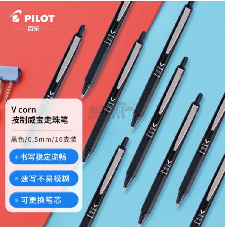 产品名称 : 百乐(PILOT)威宝按动黑武士中性笔大容量速干学生考试刷题水笔签字办公 LVKN-15EF-B 0.5mm黑色10支装