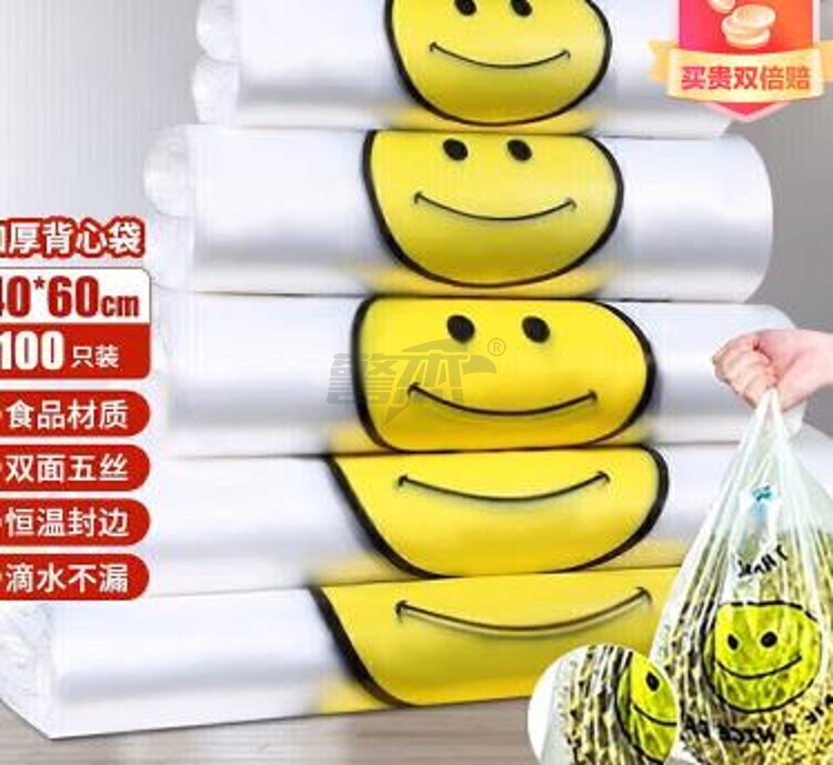 产品名称 : 背心袋大号笑脸超市购物袋食品打包袋【40*60cm100只】