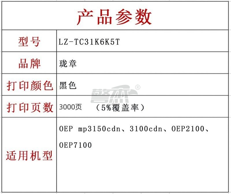 产品名称 : 珑章 LZ-TC31K6K5T碳粉盒 适用光电通OEP mp3150cdn、3100cdn、OEP2100、OEP7100