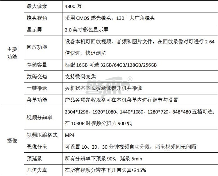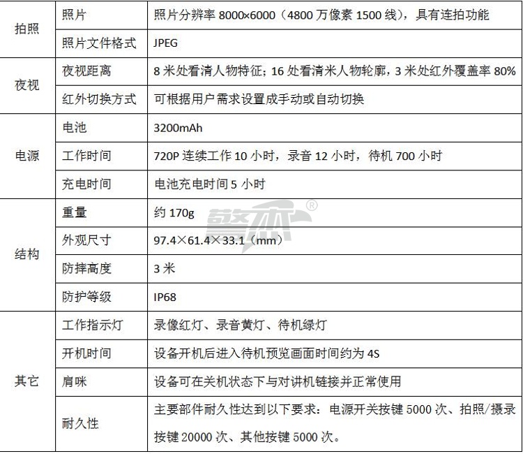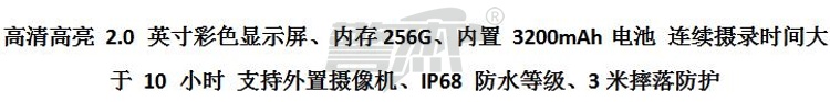 产品名称 : 华德安 执法记录仪DSJ-5H 高清高亮 2.0 英寸彩色显示屏 内存256G 内置 3200mAh电池