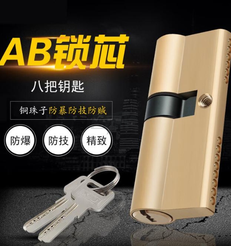 防盗门锁芯 AB锁芯入户门锁双面防撬铜弹子通用型75mm中芯(37.5+37.5)
