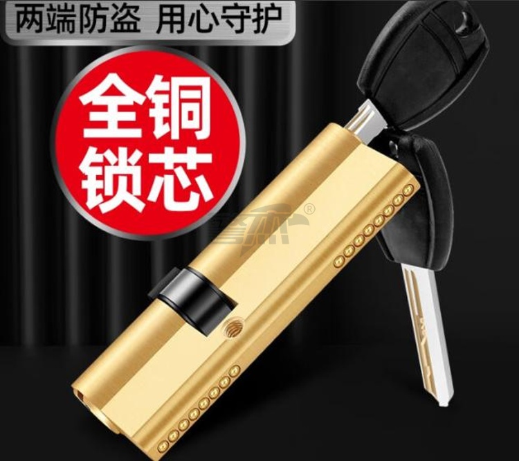 产品名称 : 防盗门锁芯全黄铜AB锁芯家用铜大门锁芯老式双面防撬铜弹子通用型 37.5+57.5=95