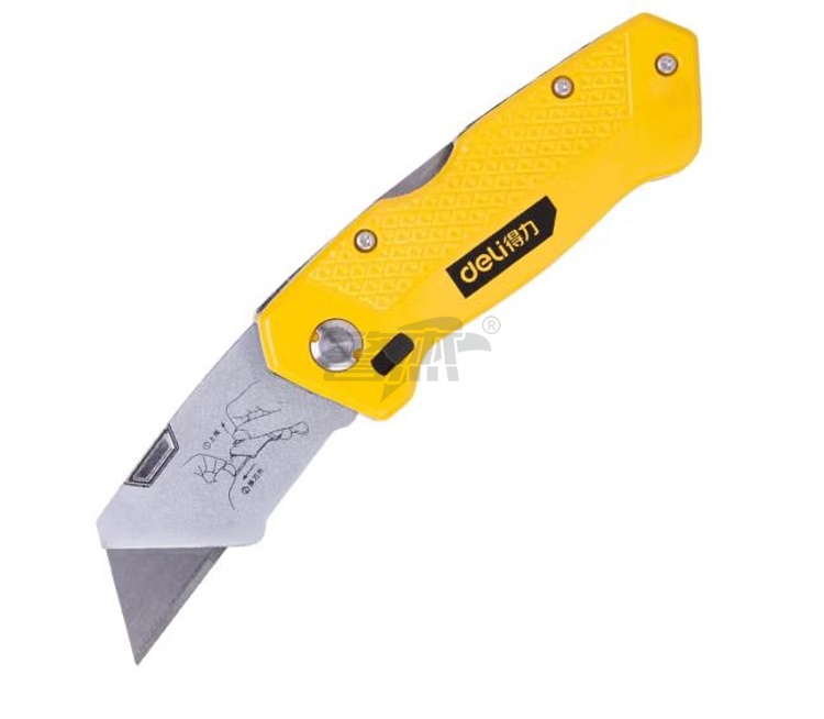 产品名称 : 得力 锌合金折叠割刀(6刀片)梯形刀片6刀片SK5 DL006Z