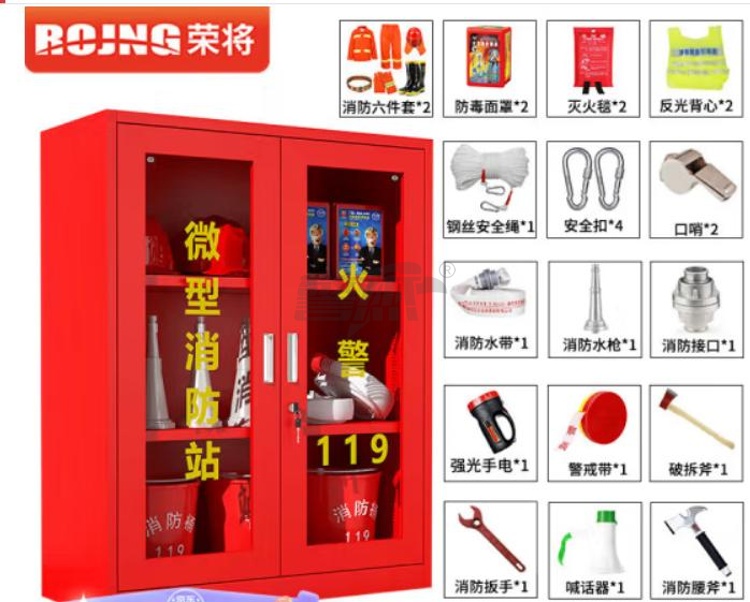 产品名称 : 荣将消防柜微型消防站全套消防器材应急柜箱 高1200宽900mm