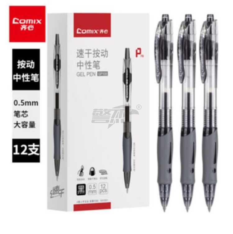 产品名称 : 齐心(Comix)0.5mm速干子弹头黑色按动中性笔/水笔/签字笔12支/盒 GP108(单位:盒)