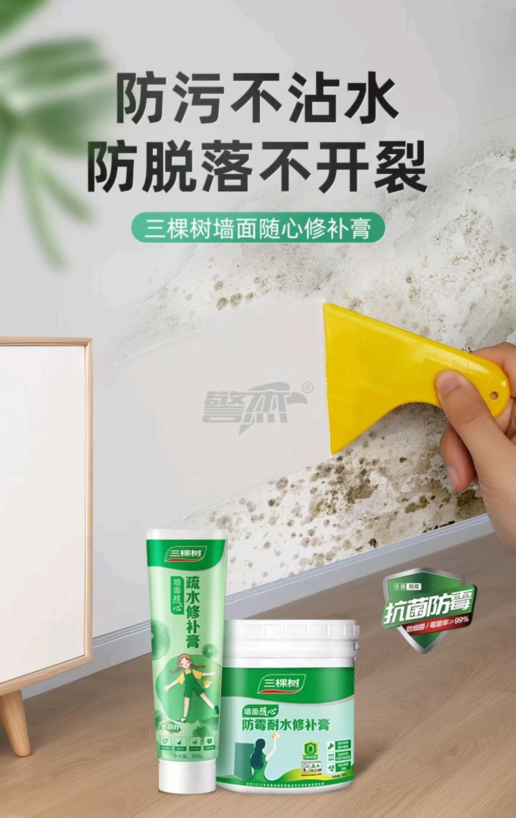 产品名称 : 三棵树漆墙面修补膏防霉抗菌白色墙面去污修复腻子粉膏墙皮脱落防水补墙膏 2.5Kg