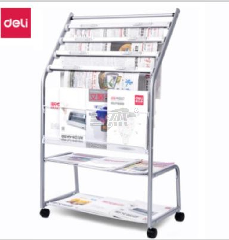 产品名称 : 得力(deli)五层商务铝合金夹条报纸架 图书馆报夹条置 宣传资料展示 高1.05米9304