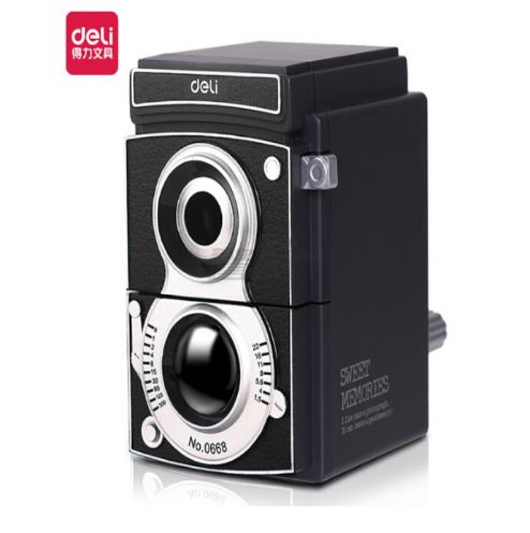 产品名称 : 得力(deli)复古相机造型转笔刀 卷笔刀铅笔刀 可调粗细学生手摇铅笔削笔器 削笔刀 黑色0668