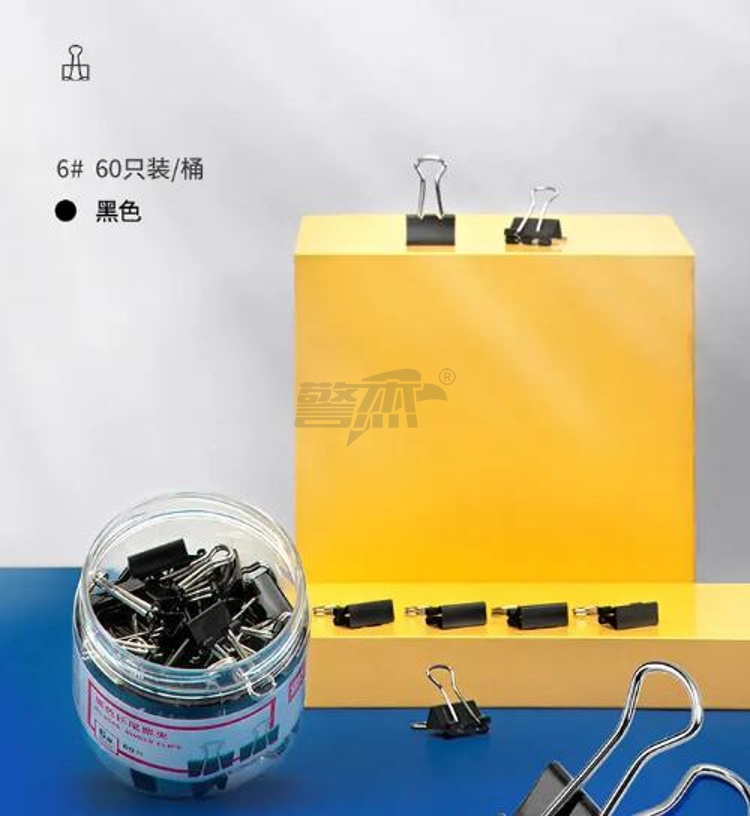 产品名称 : 得力长尾夹15mm 黑色 8566 60只/筒