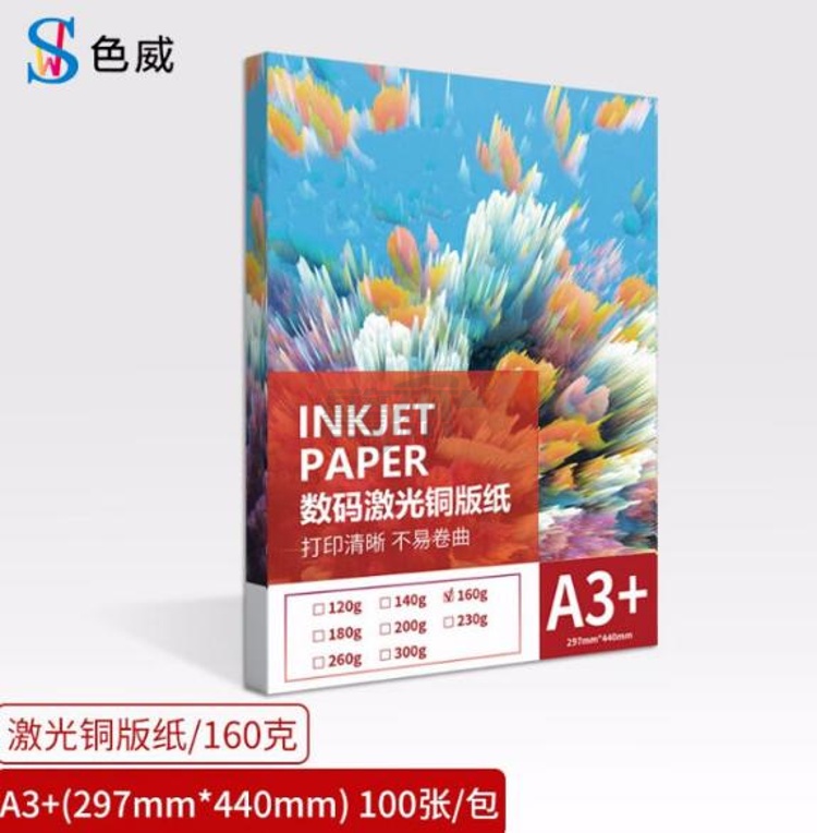 产品名称 : A3打印纸 彩色喷墨铜版纸 160G