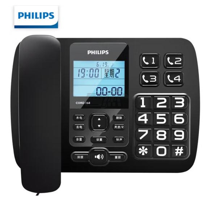 产品名称 : 飞利浦 CORD168 电话机 黑色(单位:台)