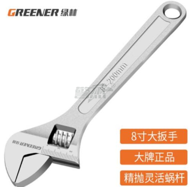 产品名称 : 绿林(GREENER)活动扳手8寸套装工具万能活口扳手大开口多功能卫浴活络扳子光柄