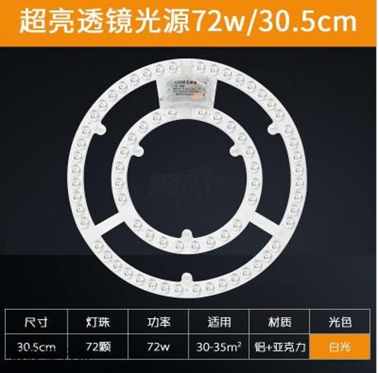 产品名称 : “芊磐”72W led吸顶灯芯 单个装(白光直径30.5cm圆形模组透镜光源灯盘节能灯泡贴片)