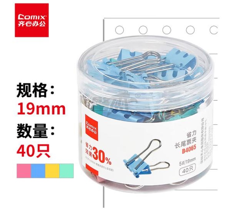 产品名称 : 齐心 B4065 省力长尾票夹(5# 40PCS)