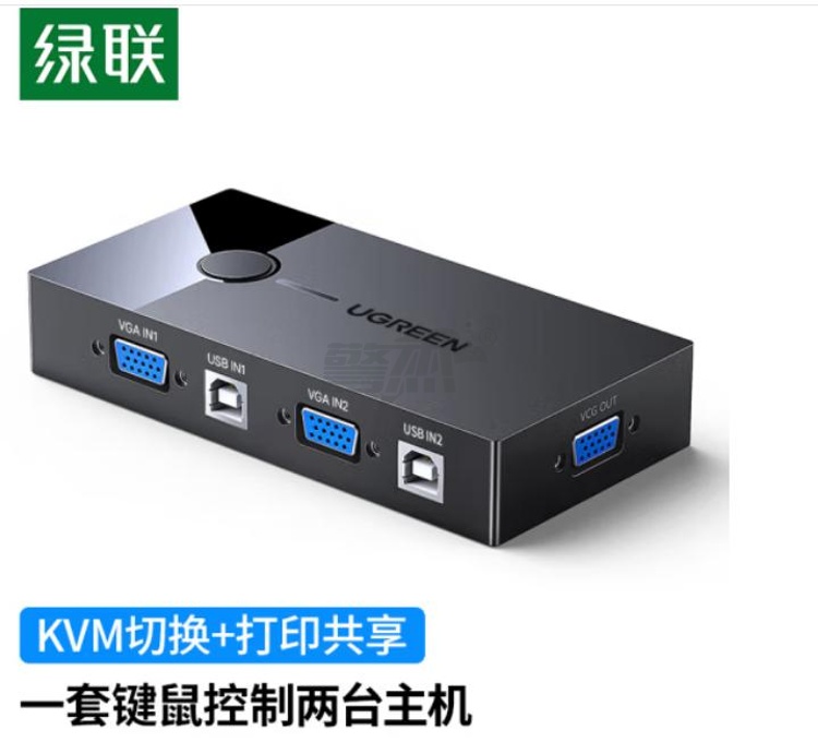 产品名称 : 绿联(UGREEN) KVM切换器 VGA视频切屏器 二进一出台式机笔记本电脑显示器监控鼠标键盘USB打印机共享器 30357