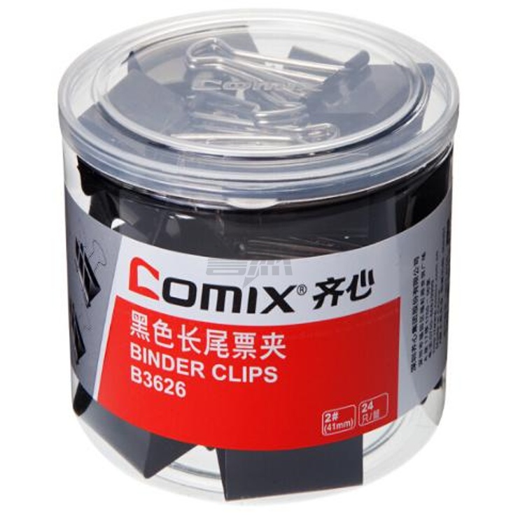 产品名称 : 齐心 长尾夹 B3626 41mm 黑 24只/筒装(单位:筒)
