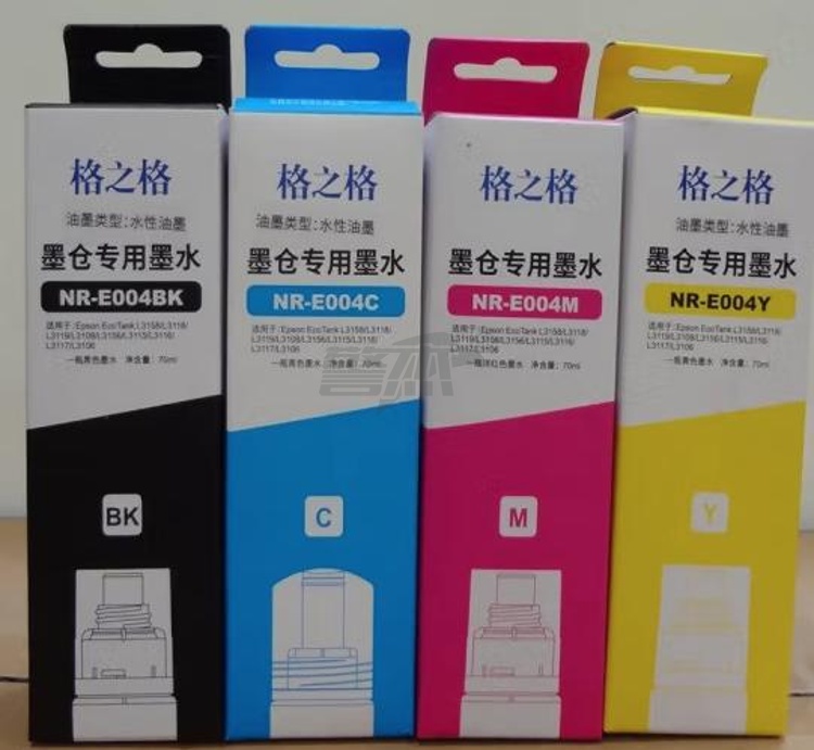 产品名称 : 格之格墨水(4色)NR-E004BK黑/NR-E004Y黄/NR-E004M红/NR-E004蓝配套打印机型号:EPSON L1119