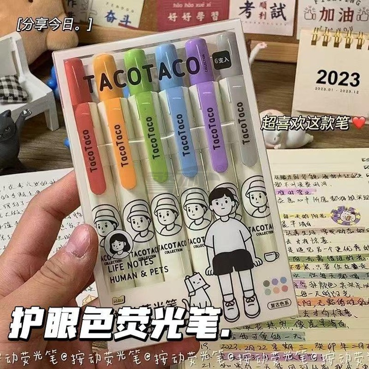 产品名称 : TacoTaco联名按动荧光笔高颜值学生用大容量手账记号笔彩色标记笔 5色/套