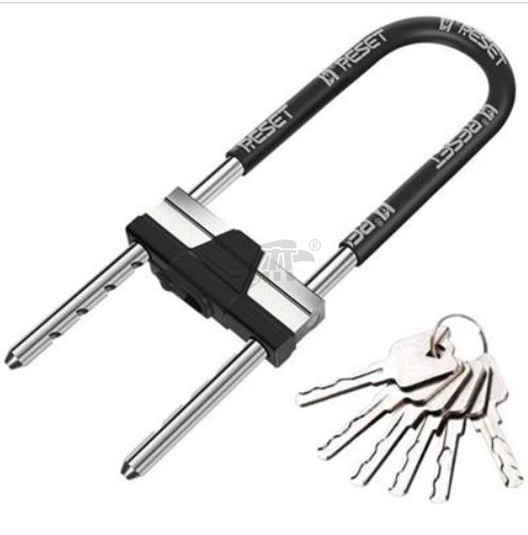 产品名称 : 锐赛特RESET U型锁双开 摩托车电瓶车锁 防盗锁具 挂锁插锁