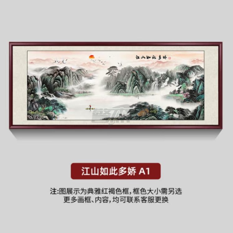 产品名称 : 良品大师 山水画客厅装饰画国画靠山图新中式办公室挂画书房茶室壁画墙画 江山如此多娇A1 98*238cm宣纸+红木色实木框
