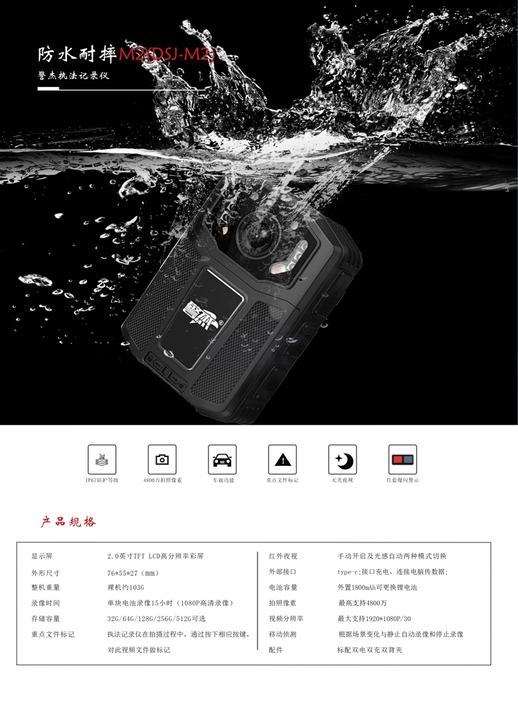 产品名称 : 警杰DSJ-M2执法视音频记录仪 128G