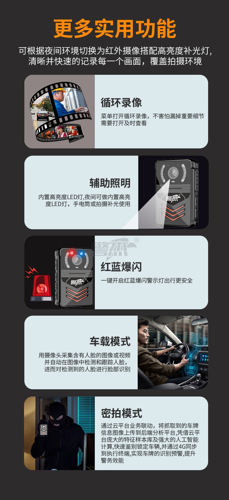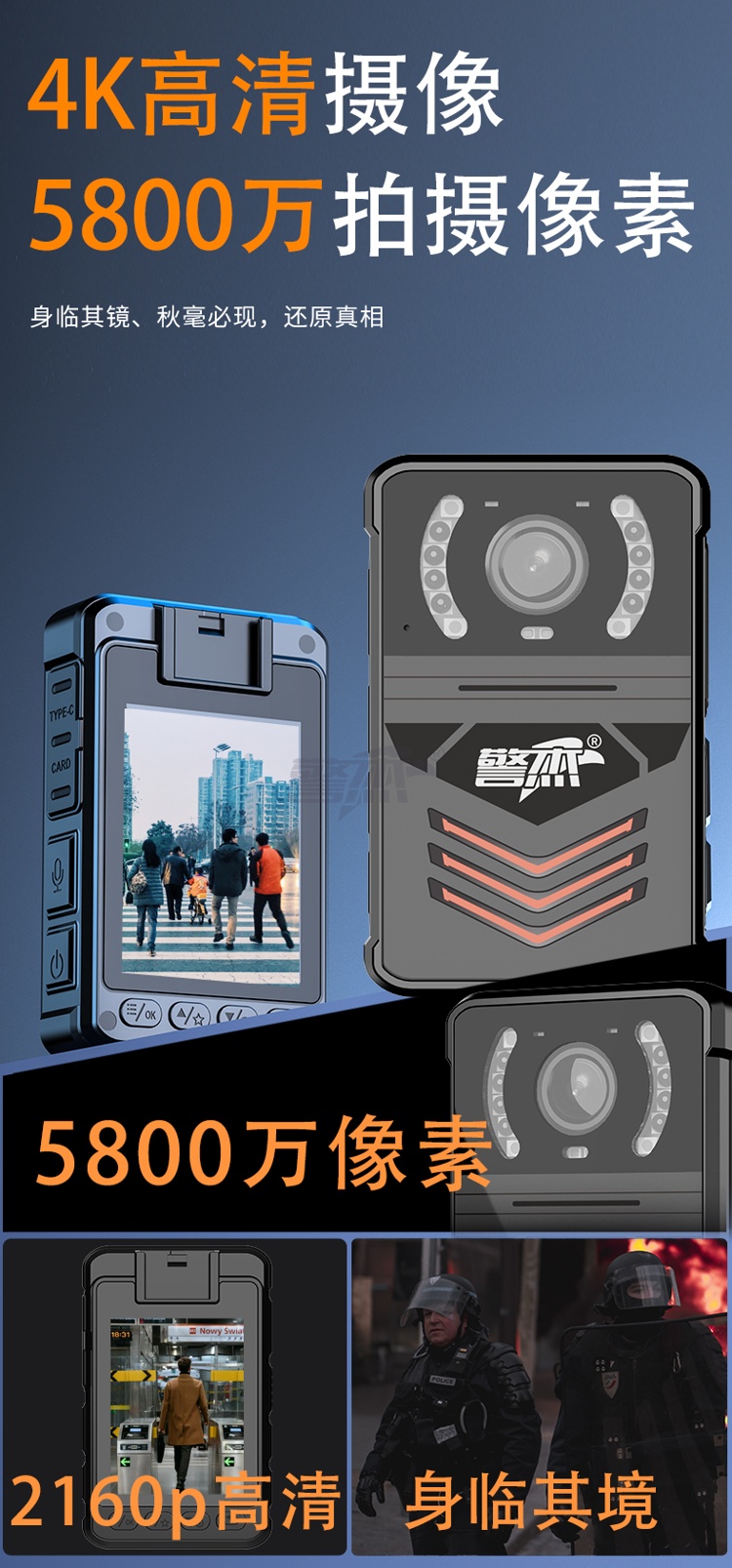 产品名称 : 警杰DSJ-U2 4G智能执法视音频记录仪64G含三年芯平台对讲资费