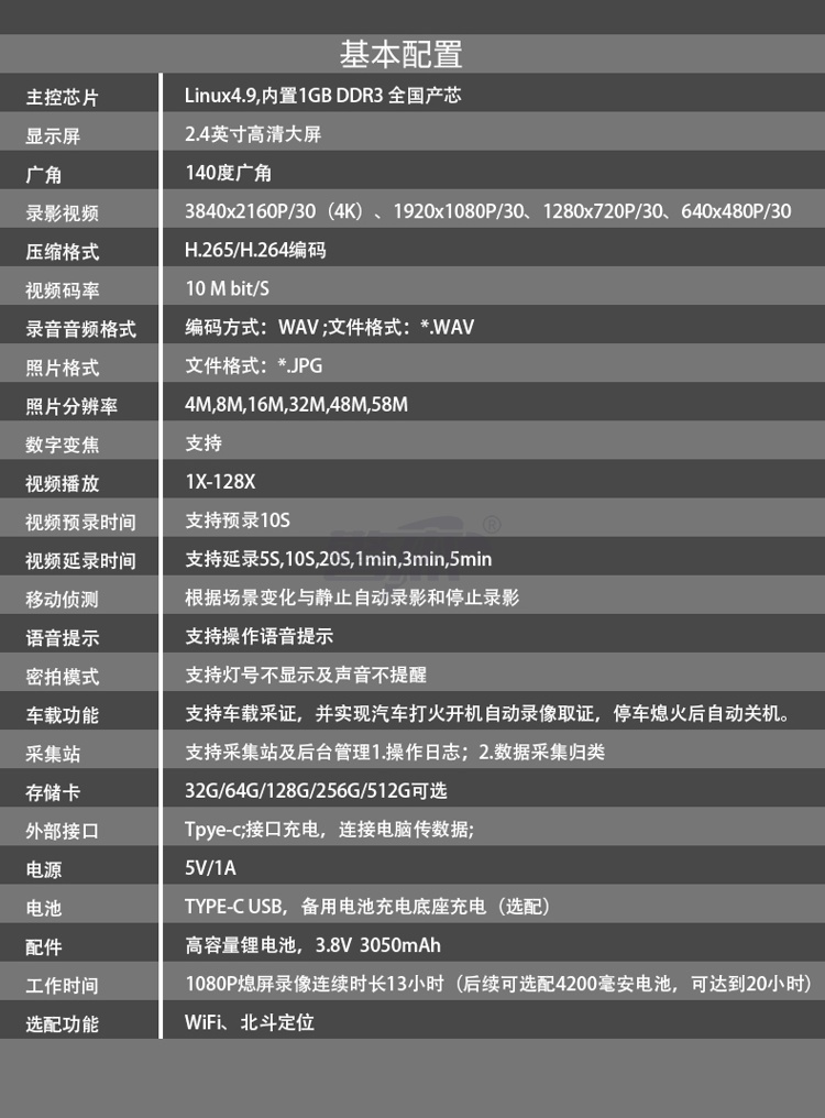 产品名称 : 警杰DSJ-U2 4G智能执法视音频记录仪128G含两年4G实时图传平台服务费