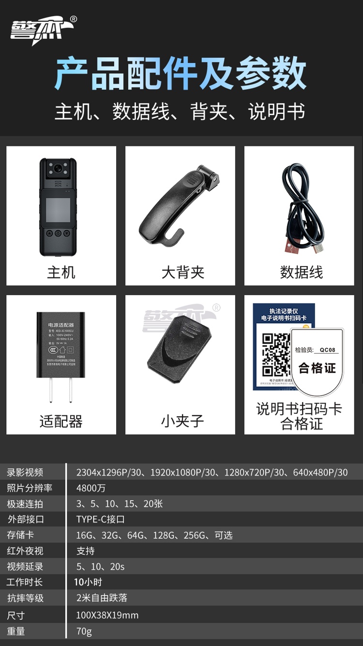 产品名称 : 警杰JJ-K1迷你相机运动型执法记录仪32G